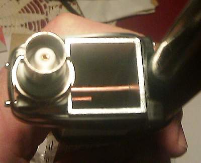 El LNB tras seccionar el guiaonda original y limar el hueco a medida para "encajarlo" sobre la antena de ranuras: