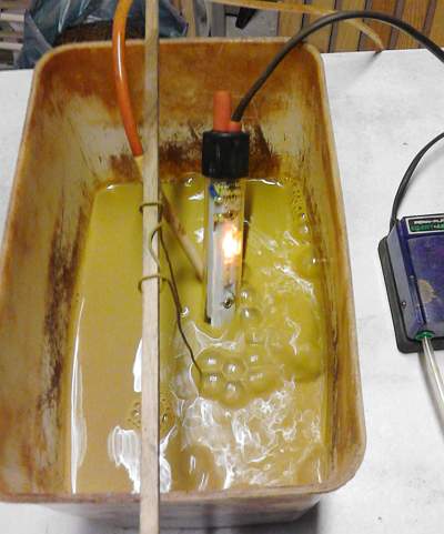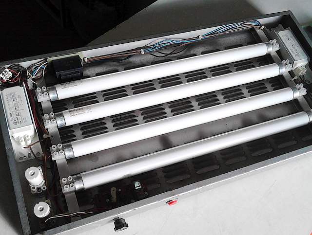 Con el paso del tiempo tengo utilizado todos los sistemas tanto de grabado como de revelado, utilice tanto el positivo como el negativo como el dibujado a mano, el cloruro ferrico, el atacador rápido, así como el agua oxigenada y agua fuerte domestica, en una de las fotos se ve mi sistema mas utilizado últimamente, como buen cacharrero, echo por mi con materiales de reciclado, grabador con tubos fluorescentes de matamoscas y temporizador, atacador con cloruro ferrico en cubeta de plástico, calentamiento por resistencia de acuario y aireador de burbujas por oxigenador de acuario, me funciona bien y como yo quiero, no me paso en el tiempo de exposición y en el atacado, no me quedo sin pistas y me da tiempo de corregir alguna por si el rotulador no quedo bien impreso, puesto que al ser montaje de utilización propia y de una sola placa el utilizar otros sistemas, mas rollo y mas costes,.