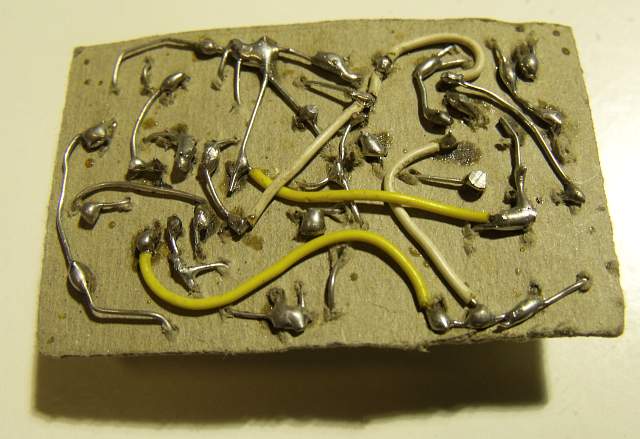 Antes por los años 1960, todos los equipos electrónicos, sobre todo los musiqueros venían alambrados a mano y soldados los componentes sobre regletas de baquelita con terminales, entre los controles de calidad de una marca, no pongo el nombre por aquello de la publicidad a pesar que como muchas ya desapareció del mercado, como digo entre sus controles estaba el de pintar todas las soldaduras, el operario de turno tenia que contar las soldaduras y darle un toque de pintura, si alguna no estaba soldada no se le daba el ok al aparato, pasado un tiempo apareció otra forma de digamos sujetar los componentes que era roscando los terminales sin soldadura, pero en seguida apareció el circuito impreso, esa placa de baquelita con una cara con una lamina de cobre sobre la que se dibujan las líneas de conexión de los componentes, que ocupan la cara contraria.