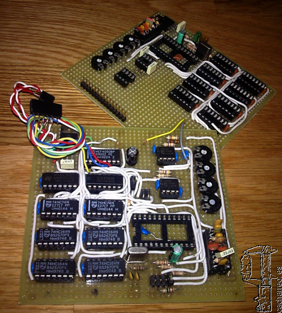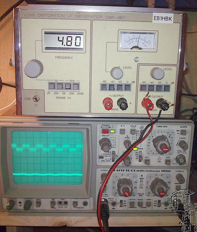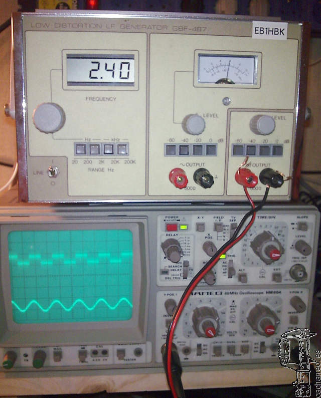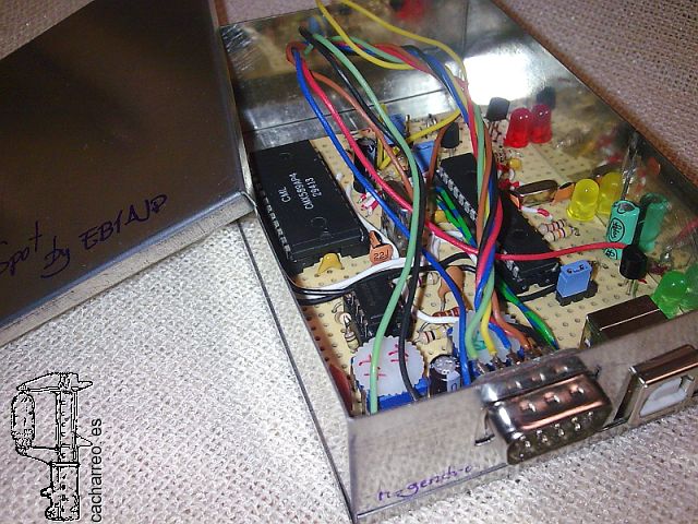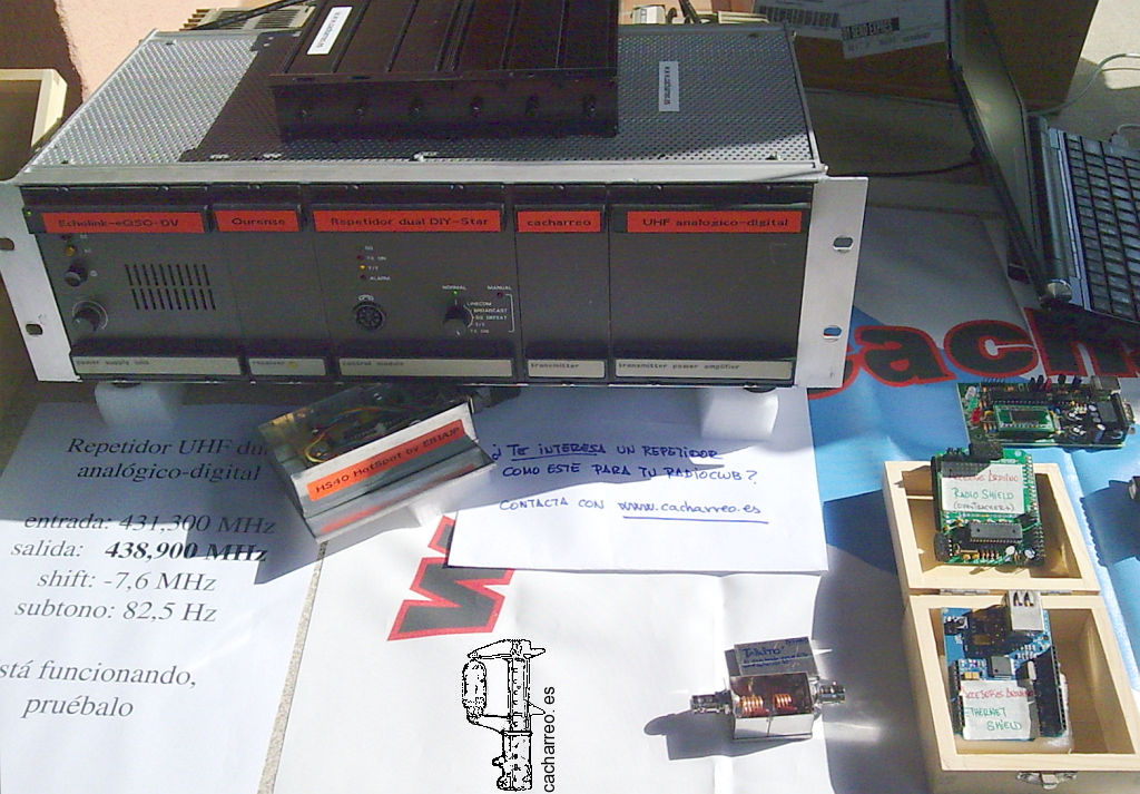 En la foto superior vemos el prototipo funcionando al 100% en el laboratorio, y en la foto inferior lo tenemos ya en su disposición compacta, durante la presentación pública realizada en los encuentros de radioaficionados de Meis y Fene, hace ya unos años.