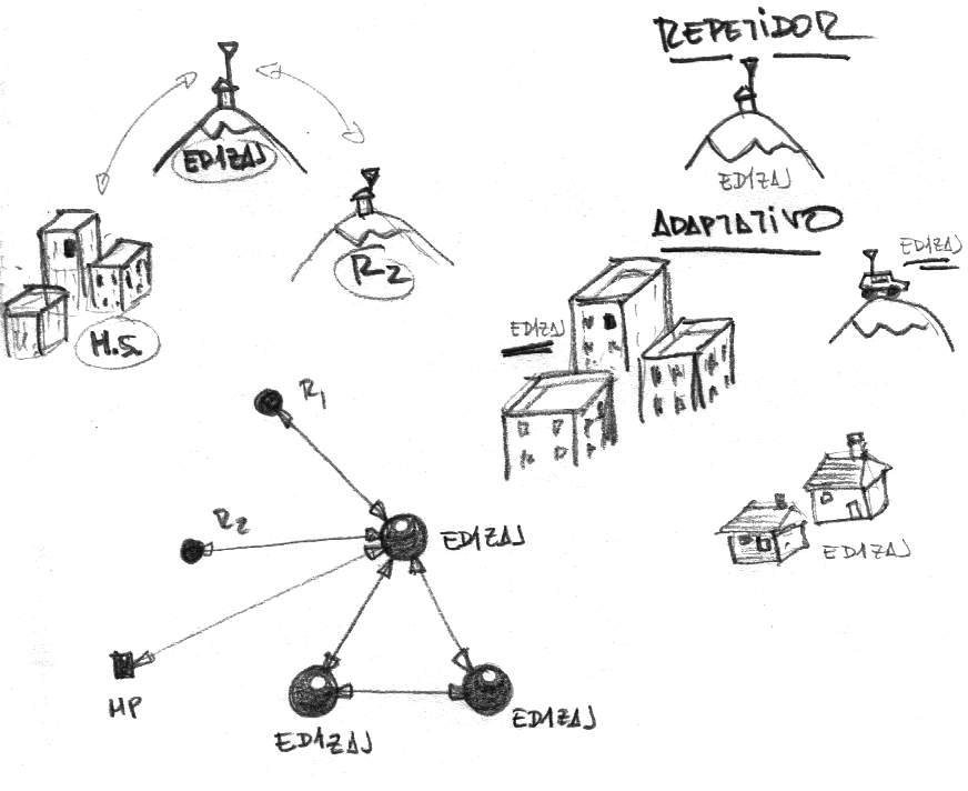 ¿Por que no avanzar también en el concepto de repetidor clásico?. Pasar del concepto de "repetidor" como instalacion física única y definida, al de "repetidor adaptativo", en el cual el repetidor pasa a ser una red en si misma, compuesta por "unidades adpatativas" sincronizadas.