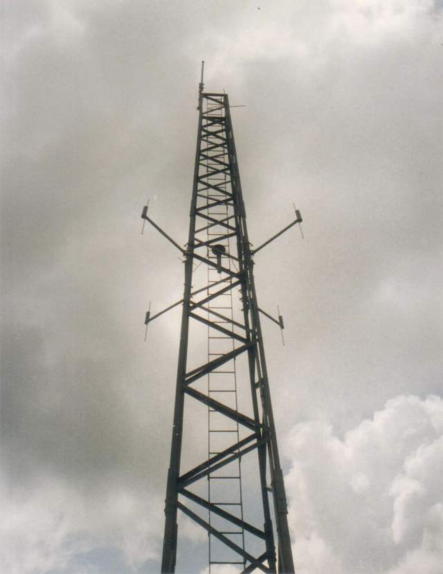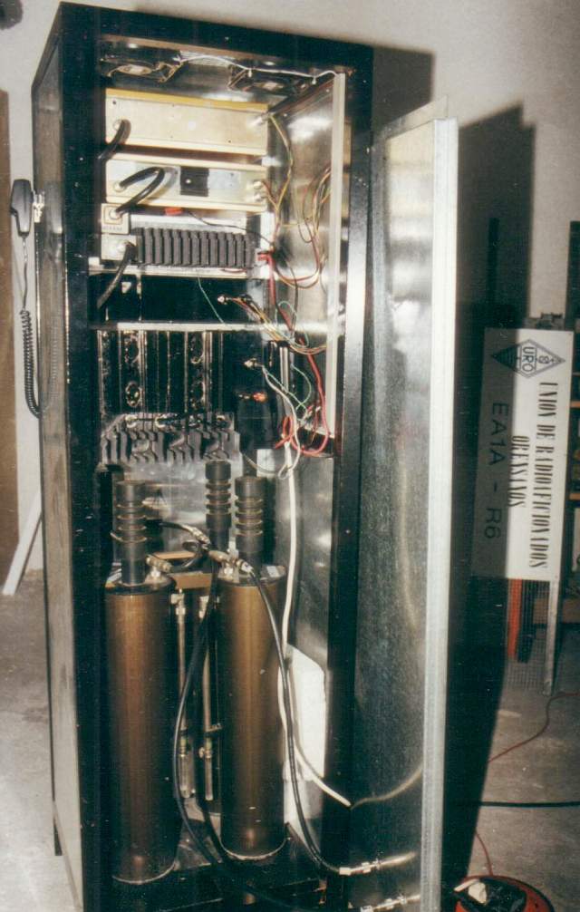 Puesta en marcha la delegación de la URE y con la ayuda de unos cuantos colegas nos decidimos a afrontar la remodelación de el R-6 y que estuviera perfectamente operativo, se estudiaron nuevos tipos de antenas y modificar el repetidor aprovechando los circuitos del anterior y dándole la máxima potencia, antena colonial para recepción en la cima de la torre y 4 dipolos enfaxados en el fondo de la torre para evitar al máximo la interacción y tener el máximo alcance, se puede decir que los objetivos se cumplieron, se reportaron contactos de mucho alcance, como fueron Canarias y Ceuta y QSOs diarios de localidades difíciles para las VHF.