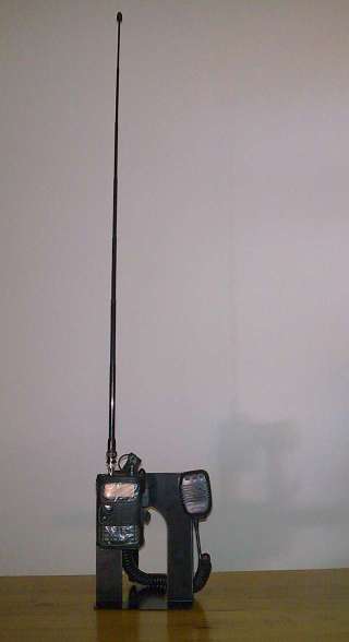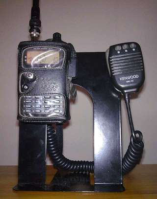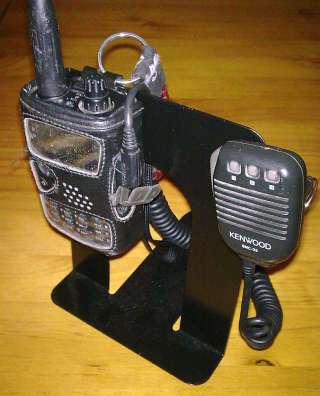 Desde hace años empleo un clásico sujeta libros como soporte para alguno de mis walkies. Hoy en dia pueden conseguirse muy económicos buscando por los bazares.