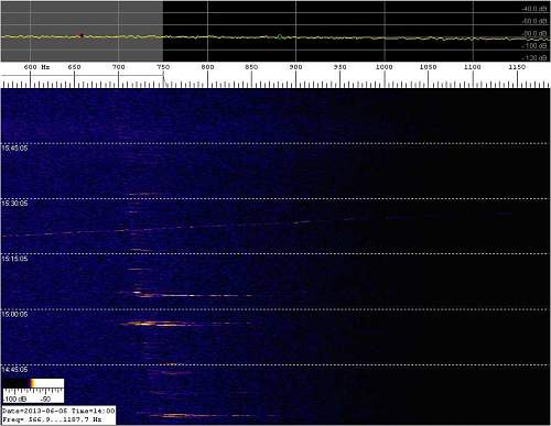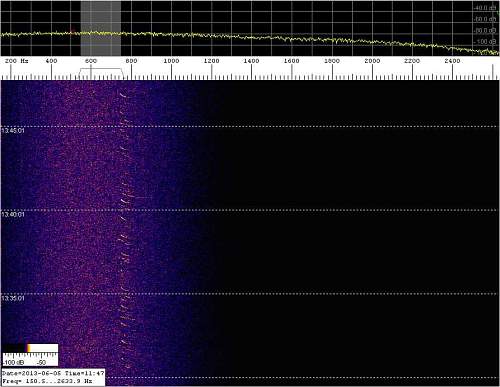 Sin embargo Alfredo desde Vigo, recorriendo el dial del receptor, a duras penas las escucha o no las recibe en absoluto. No obstante con la ayuda del software adecuado es posible detectar estas señales cuando no rebasan el nivel de ruido de la banda, o incluso están por debajo de él.