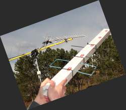 Pinchando sobre la imágen se accede a la galería con los planos, medidas propuestas y diagramas de radiación y ganancia estimados. Construimos el primer modelo de la antena el justo el Domingo anterior al lanzamiento en la Antena Party, y una segunda antena al día siguiente en la misma Universidad, con los satélites ya en órbita y empleando materiales de fortuna. Con ella se recibieron perfectamente los primeros pases, con la sencillez que podeis ver en las fotos del evento. Ademas se subieron también a la web los archivos de modelado para poder simular y trabajar con el programa MMANA.