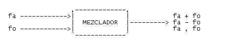 Cogemos entonces el mezclador, al cual tenemos que conectar las dos señales, fa (antena) y fo (nuestro generador), y a la salida del mezclador tendremos… fa+fo, fa-fo, y fa y fo.